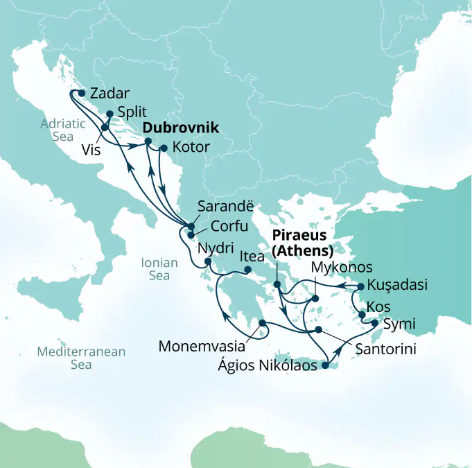Départ : Athènes (Le Pirée) - Grèce / Arrivée : Dubrovnik - Croatie