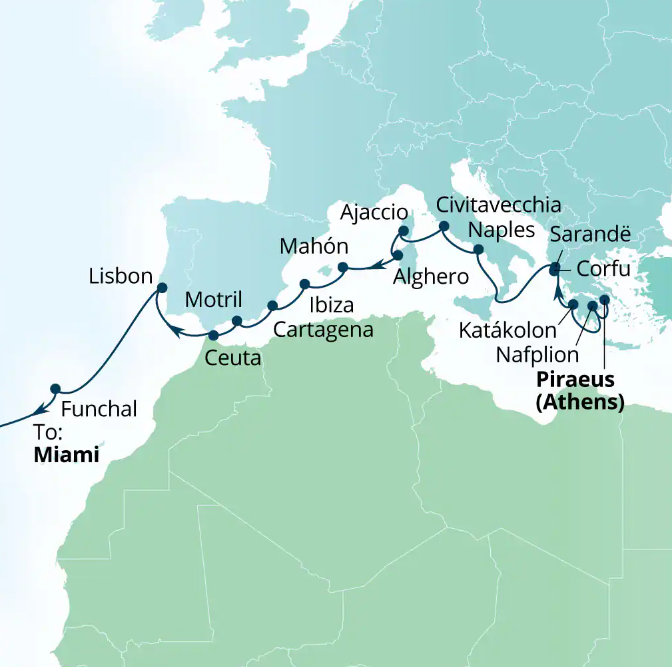 Traversée de l'Atlantique vers Miami : Joyaux grecs, explorateur espagnol - 6676B