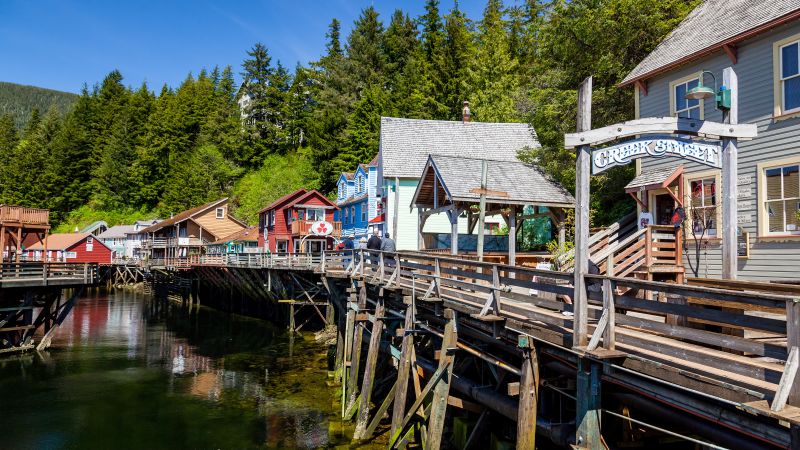 Ketchikan est un régal pour les yeux. Elle se trouve sur le Passage Intérieur, qui marque la frontière en le Canada et les Etats-Unis. Avec ses petites maisons colorées sur pilotis, les denses forêts de résineux et les montagnes un peu plus loin, Ketchikan accueille les visiteurs dans un véritable décor de carte postale.