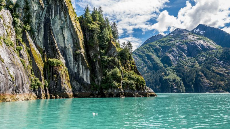 Endicott Arm est un fjord long de près de 50 kilomètres et encore un peu méconnu. Entouré de vertigineuses falaises de granit d’où jaillissent de nombreuses cascades, on peu y apercevoir des icebergs à la dérive dans des eaux glaciales d’un bleu profond. De nombreuses colonies de phoques peuplent les rivages, ainsi que des ours bruns, des loups, des élans, et il n’est pas impossible non plus d’apercevoir des aigles majestueux tourner dans le ciel.