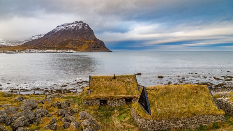 Située sur une péninsule sur la côte est de l’Islande, la petite localité de Djupivogur est surtout connue pour une œuvre d’art assez singulière : d’énormes œufs en pierre, « The Eggs of Merry Bay », alignés le long du port. Depuis le village, on peut apprécier la magnifique vue sur les montagnes environnantes, notamment l’impressionnant Mont Bulandstindur et sa forme pyramidale très reconnaissable.