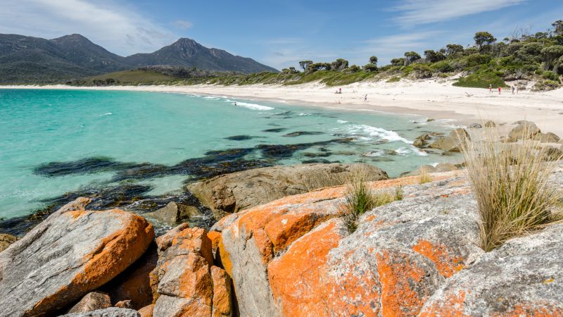 Connue aussi sous le nom de baie Fleurieu, la baie des Huitres s’ouvre sur une côte sauvage rocheuse sur l’île de Tasmanie, au sud-est de l’Australie. Plus vers l’intérieur des terres se trouvent le Parc National de Freycinet et la chaîne montagneuse des Hazards, aux teintes ocre.