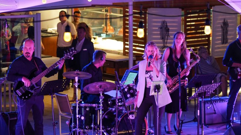 C’est l’une des soirées les plus attendues, un moment magique où les passagers dînent sur le pont près de la piscine, sous les étoiles. Au menu, un buffet garni de succulents plats, des grillades au barbecue, dans une ambiance festive, avec un groupe qui joue de la musique live pour danser jusqu’au bout de la nuit !
