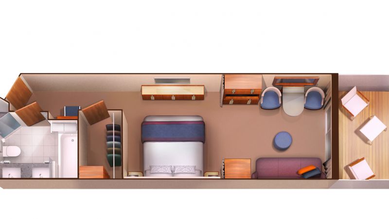 Les Veranda Suite sont dotées d'une grande baie vitrée donnant sur un balcon privé, d'un coin salon, d'un lit queen-size ou de deux lits jumeaux, d'une table à manger pour deux, d'un dressing, d'une télévision interactive à écran plat, d'un bar approvisionné, d'un réfrigérateur et d'une salle de bain spacieuse en marbre avec double vasque. La Panorama Veranda Suite est une catégorie de suites qui n'est disponible que sur les Seabourn Venture et Pursuit.